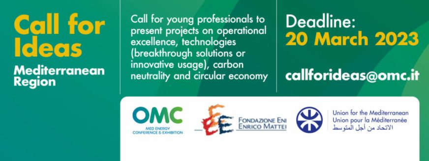 أطلقت مؤخّرا ندوة OMC-Med حول الطّاقة بالتّعاون مع الاتحاد من أجل المتوسّط و مؤسّسة FEEM Eni Enrico Mattei) ( النّسخة الثانية من “الدّعوة لتقديم الأفكار- المنطقة المتوسطيّة” وهي فرصة للجيل الجديد من الباحثين و المهنيّين الشبّان للبروز و لتقديم أفكارهم و مشاريعهم في مجال الانتقال الطّاقي و تسريع المسار نحو طاقة أكثر نظافة وميسورة التكلفة وآمنة وتوفير حلول لتحقيق النمو الاجتماعي والاقتصادي في المنطقة والمجتمع المحلّي.