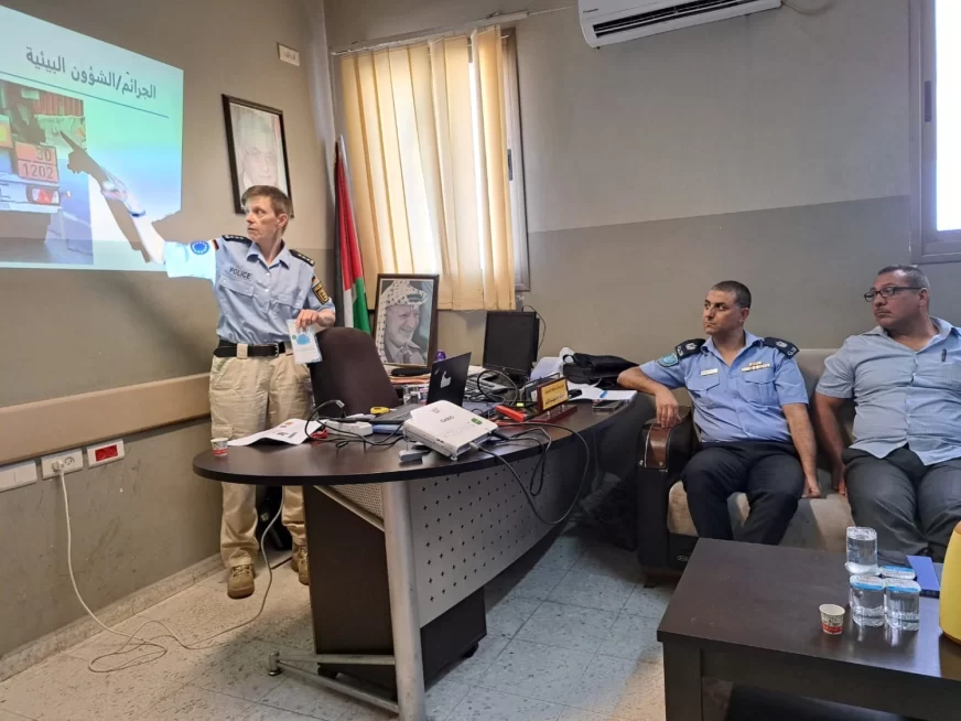 لم تبدأ المحاضرة/ التدريب بعد الذي أشرفت عليه خبيرة البيئة في بعثة الشرطة الأوروبية، وهي أيضا مستشارة للشرطة، لكنّ المشاركة داخل القاعة بدت واضحة بشكل ملموس، حيث دارت النّقاشات بين الضباط حول الأسباب التي تجعل الجرائم البيئية والبيئة بشكل عام موضوعا ذا صلة في فلسطين كما في أي مكان آخر، منذ الدقيقة الأولى.