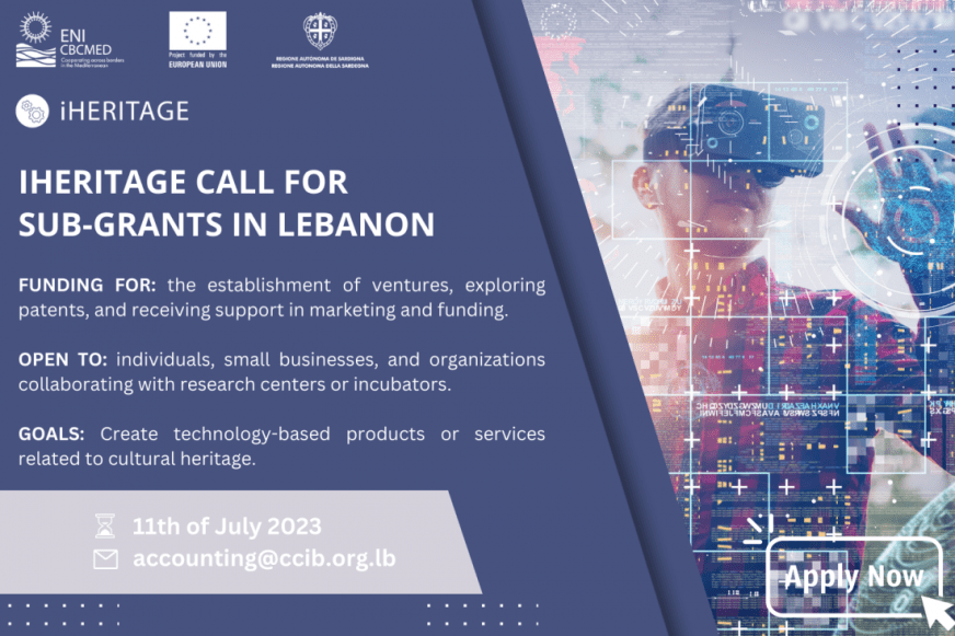 انطلقت رسميّا دعوة iHERITAGE لتقديم منح فرعيّة في لبنان وهي مبادرة مكرسة لإحداث ثورة في تفسير وحفظ التراث الثقافي لليونسكو في منطقة البحر الأبيض المتوسط باستخدام التكنولوجيا المتقدمة تهدف إلى تعزيز طريقة فهمنا وحمايتنا للتراث الثقافي الثريّ في المنطقة.