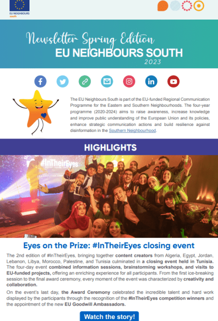 يطلق برنامج EU Neighbours South نشرته الإخبارية التي تحتوي على أبرز الأنشطة خلال الفترة من مارس إلى مايو 2023 والأخبار على المستوى الإقليمي.