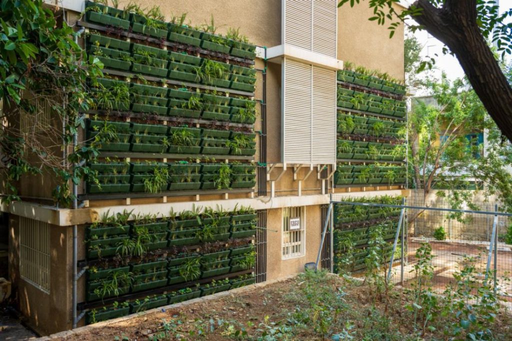هذا الجدار الذي تنمو فوقه اليوم منظومة بيئيّة عموديّة كان جدارا عاديّا خارج مبيت طلابي في الجامعة الأميركية في بيروت وقد تحوّل اليوم إلى جدار أخضر وخصب تغمره الحياة. وهو لا يقتصر على توفير مشهد ممتع بل هو نظام لمعالجة المياه الرمادية. تم إنشاء الجدار في إطار مشروع NAWAMED ، المبادرة الأوروبيّة متعدّدة البلدان التي تهدف إلى توفير حلول الاقتصاد الدائري القائمة على الطبيعة في المناطق الحضرية عبر مختلف أنحاء البحر الأبيض المتوسط.