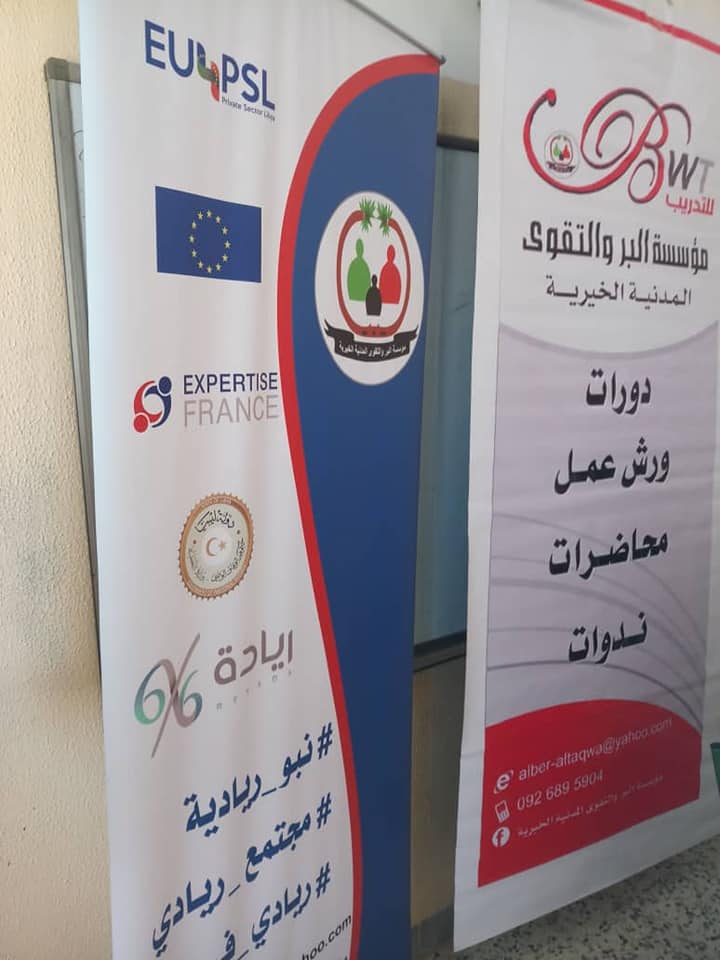 قبل العمل مع EU4PSL ، كانت الدورات التدريبية للجمعيّة موجهة نحو السّلم الاجتماعي والتّسوية السلميّة للنّزاعات وبناء المجتمع المحلّي. كالنت التّدريبات تهدف إلى رفع الوعي وتعزيز ثقافة التعاون صلب المجتمع فيما بعد الصراع. مع مرور الوقت، صاغت جمعيّة “البرّ والتّقوى” نهجا شاملا يتماشى مع مواطن القوة والاحتياجات داخل المجتمع. لم تكتف الجمعيّة برفع الوعي بشأن مواضيع حيوية مثل الصحة وتنظيم حملة حول سرطان الثدي، بل شاركت أيضا في مبادرات مدنية مثل تشجيع الناخبين على التّصويت خلال الانتخابات وتمتين الوعي بمحتوى الدستور الليبي الجديد.