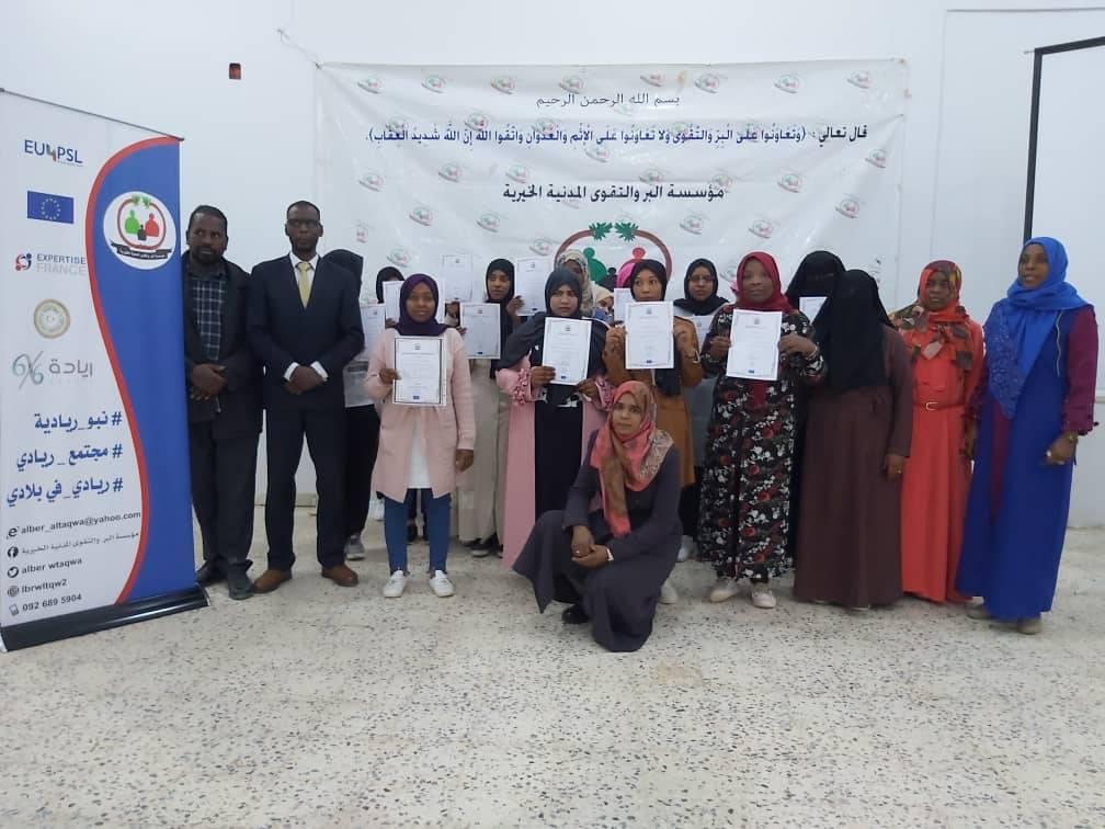 سنة 2011، أنشأت عائشة المهدي وفريقها جمعية “البر والتّقوى” التي قدّمت إلى حدّ اليوم خدمات للمجتمع المحلّي على امتداد أكثر من 10 سنوات. بدعم من مشروع دعم تنمية القطاع الخاصّ في ليبيا EU4PSL المموّل من الاتحاد الأوروبي، قدمت الجمعية تدريبا ودعما شاملين سعيا منها لتعزيز النمو الاقتصادي وساعد عمل الجمعيّة في الحفاظ على تقاليد الأجداد وإطلاق مشاريع محلية ناجحة