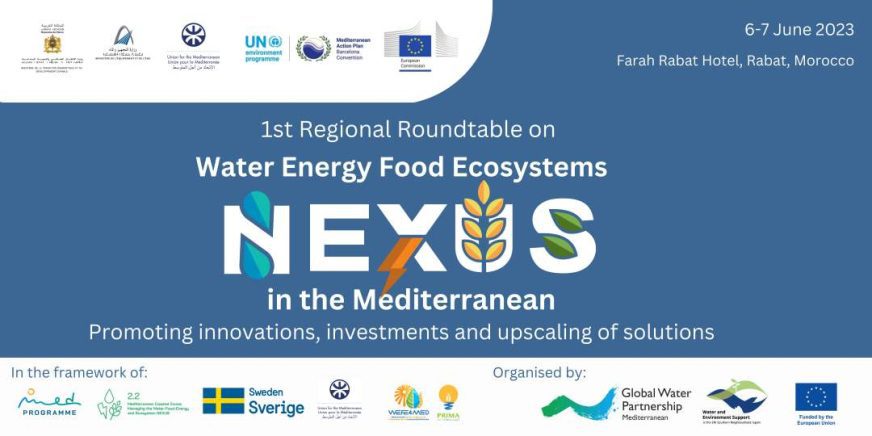 Coordinated actions to tackle Water-Energy-Food-Ecosystems Nexus challenges in the Mediterranean are required at both national and Regional levels. In order to further advance Nexus understanding in that regard and facilitate cross-fertilization among institutions, organizations and practitioners, a multi-stakeholder dialogue among Mediterranean countries and stakeholders is launched with the 1st Regional WEFE Nexus Roundtable in the Mediterranean on ‘Promoting innovation, investments and upscaling of solutions’ which will take place on 6 and 7 (half day) June 2023, in Rabat, Morocco and online.
