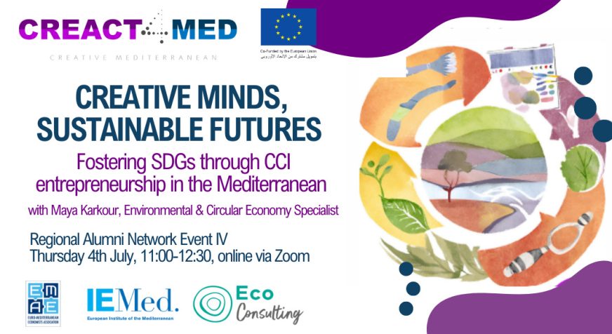 The Cultural and Creative Industries (CCI) play a pivotal role in the Mediterranean region’s social, economic, and cultural fabric. This diverse industry includes art, design, film, music, literature, crafts, and more. Given their societal impact, CCI actors have the potential to significantly contribute to the Sustainable Development Goals (SDGs). As part of CREACT4MED’S Regional Alumni Event series, this webinar aims to explore how CCI entrepreneurs can align their projects with SDGs to foster sustainability and make a positive impact on their environments.