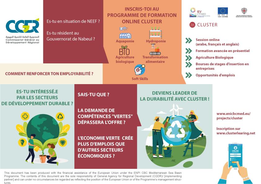 Le programme de formation gratuit du projet CLUSTER en Tunisie, géré par le Commissariat Général au Développement Régional (CGDR), partenaire du projet en Tunisie, comprend 3 phases.