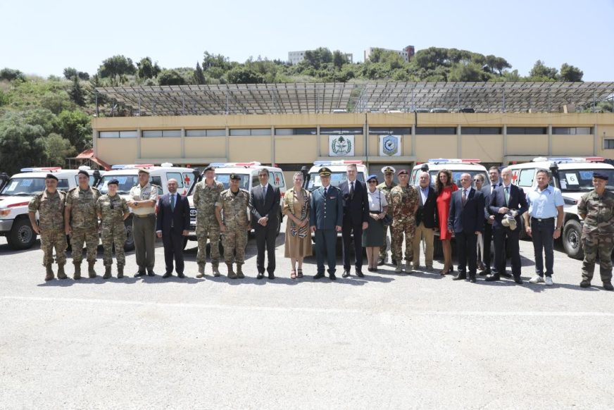 في حفل أُقيم في مقر اللواء اللوجستي يوم 25 جوان/يونيو 2024، سلّم الاتحاد الأوروبي ست سيارات إسعاف إلى الجيش اللبناني.
