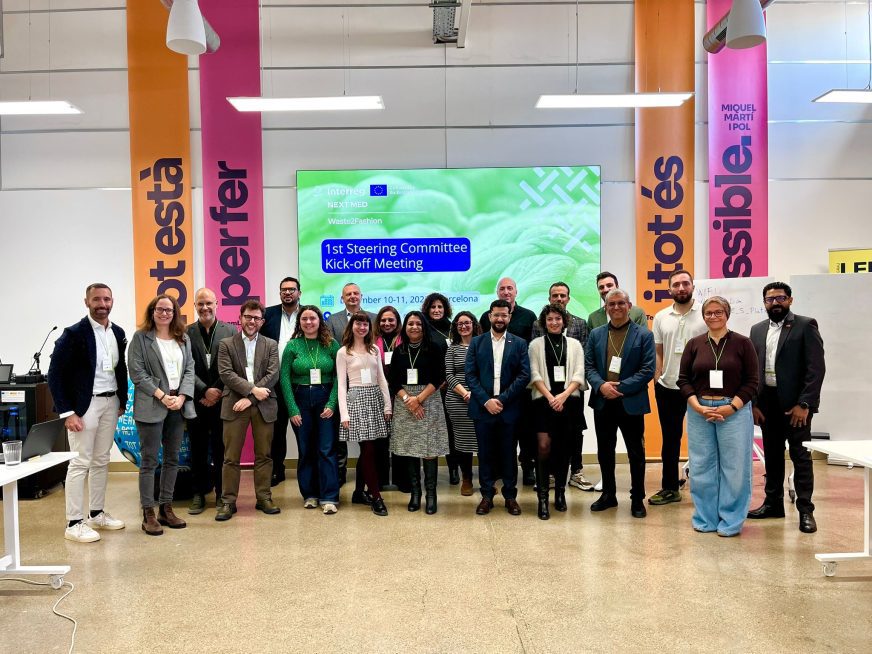 Le projet Waste2Fashion a été officiellement lancé lors de sa première réunion de pilotage, qui s’est tenue à Barcelone les 10 et 11 décembre au Barcelona Circular (BAC) Hub. Cette réunion a rassemblé les partenaires du projet venus de toute la région méditerranéenne, marquant ainsi le début d’une action commune pour traiter les déchets textiles post-consommation grâce à des approches innovantes d’économie circulaire.