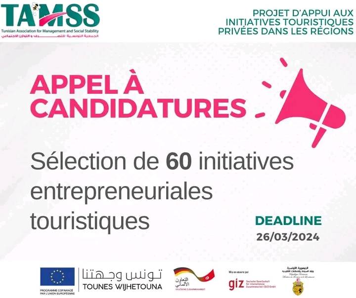 Appel à candidatures pour la sélection de 60 initiatives entrepreneuriales touristiques, Tunisie.