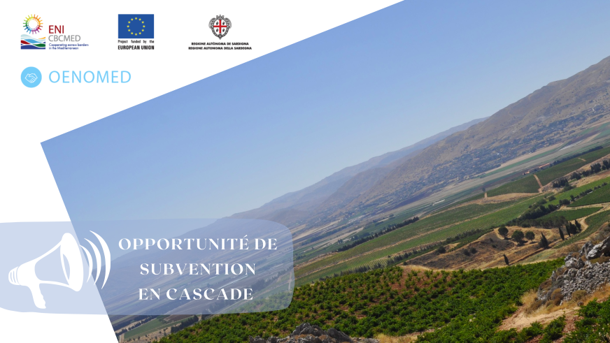 SoumissionnezL’Union Vinicole du Liban (UVL) Partenaire du projet OENOMED « Qualification et Promotion des filières viti-vinicoles des Aires Protégées de la Méditerranée», financé dans le cadre du Programme IEV CTF MED 2014-2020 lance un appel pour bénéficier d’une subvention en cascade conformément aux spécifications administratives et techniques mentionnées dans la Description du projet et aux lignes directrices pour demandeurs de subventions en cascade.