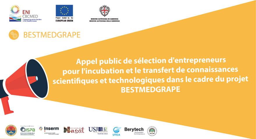 Le projet BESTMEDGRAPE lance un appel public de sélection d’entrepreneurs pour l’incubation et le transfert de connaissances scientifiques et technologiques pour la création de start-ups / PMEs dans les domaines de la valorisation du raisin et de l’exploitation de ses sous-produits