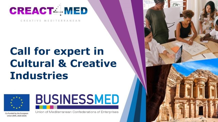 BUSINESSMED membre du consortium du projet CREACT4MED « pour la promotion des industries culturelles et créatives (ICC) », recherche actuellement un expert en analyse commerciale avec une solide expérience en recherche de marché, spécifiquement dans les ICC de la région MENA.