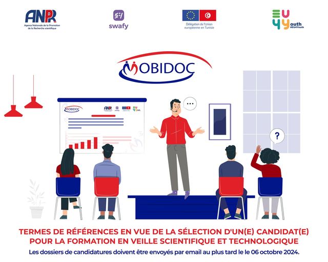 Dans le cadre du projet SWAFY financé par l’Union Européenne, l’Agence Nationale de la Promotion de la Recherche Scientifique (ANPR) lance les Termes de Références en vue de la Sélection d’un(e) candidat(e) pour la formation en veille scientifique et technologique.