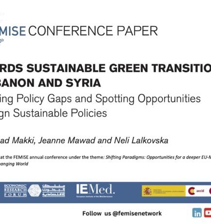Ce document a été soumis et accepté pour présentation à la conférence annuelle 2023 du FEMISE « Changement de paradigmes : possibilités pour une intégration euro-méditerranéenne plus étroite dans un monde en mutation », organisée à Barcelone, en Espagne, du 27 au 29 septembre 2023, et qui avait pour thème : une région euro-méditerranéenne mieux intégrée.