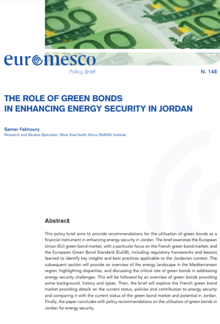 Ce document d’orientation vise à fournir des recommandations pour l’utilisation des obligations vertes en tant qu’instrument financier destiné à renforcer la sécurité énergétique en Jordanie. Il analyse le marché des obligations vertes de l’Union européenne (UE) en mettant l’accent en particulier sur le marché français des obligations vertes et la norme des obligations vertes européennes, y compris les cadres réglementaires et les enseignements tirés, afin de recenser les informations clés et les meilleures pratiques applicables au contexte jordanien.