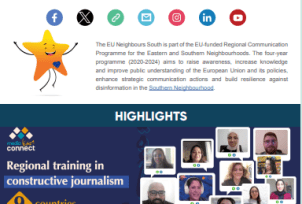 EU Neighbours South est le programme de communication régional de l’Union européenne pour le voisinage Sud. Il vise à sensibiliser, accroître les connaissances et améliorer la compréhension du public de l’UE et de ses politiques, renforcer les actions de communication stratégique et renforcer la résilience contre la désinformation dans le voisinage Sud.