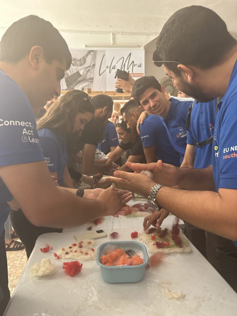 Sur place, le groupe est accueilli par l’odeur de la caroube fraîchement traitée. Les jeunes visitent le laboratoire de Maha, qui leur présente chaque étape du processus de production. Du tri des gousses aux différentes machines permettant de décliner le fruit sous de nombreuses formes, tous ont pu observer cette combinaison harmonieuse de tradition et d’innovation au service de produits uniques et axés sur le bien-être.