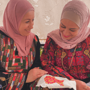 Nous rencontrons d’abord Helweh, une artisane palestinienne de 65 ans. Son travail avec GIOIA a changé sa vie : « Je travaillais dans des conditions très difficiles dans une usine de vêtements, 6 jours par semaine, pour moins de 360 dollars par mois. »