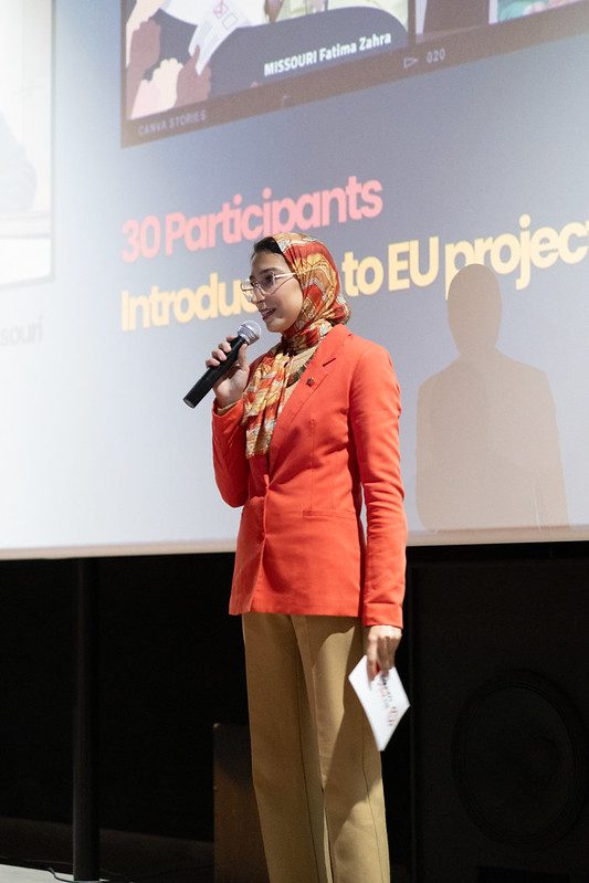 Soumia l’a elle-même éprouvé dans sa jeunesse, les zones rurales marocaines, bien que riches en culture et en traditions, sont confrontées à des défis significatifs en matière d’accès à l’éducation et à la technologie. En tant qu’EU Jeel Connector, c’est cette motivation qui la porte : « Je veux que les jeunes des zones rurales aient la même chance que moi de découvrir les opportunités offertes par l’Union européenne ».