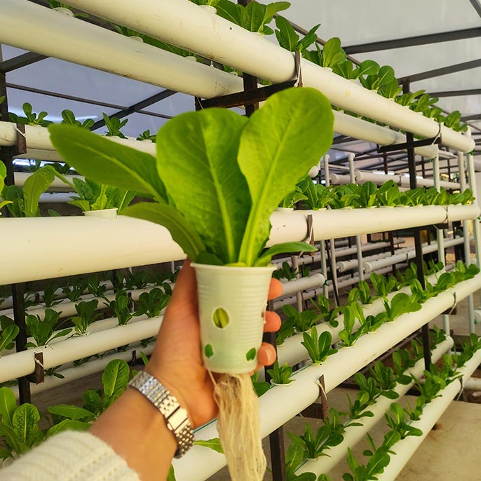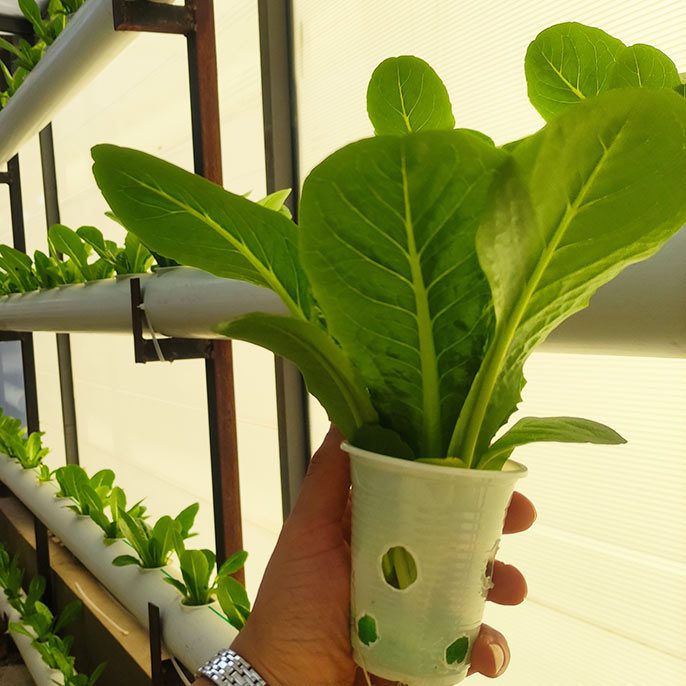Elle utilise des espaces limités et des techniques sans produits chimiques, maximisant ainsi la production alimentaire sans dépendre des méthodes traditionnelles exploitant les terres. « Avec cette technique, nous n’avons besoin que de 90 mètres carrés pour produire plus de 400 kilogrammes de denrées en 25 jours », explique Fatima, qui a lancé l’initiative à l’âge de 21 ans seulement, avant d’ajouter qu’« en plus d’assurer un rendement très élevé, cette méthode minimise également notre empreinte carbone puisque les aliments sont cultivés à l’intérieur d’une serre, sans pesticide, pompe ou autre dispositif émettant des gaz nocifs ».
