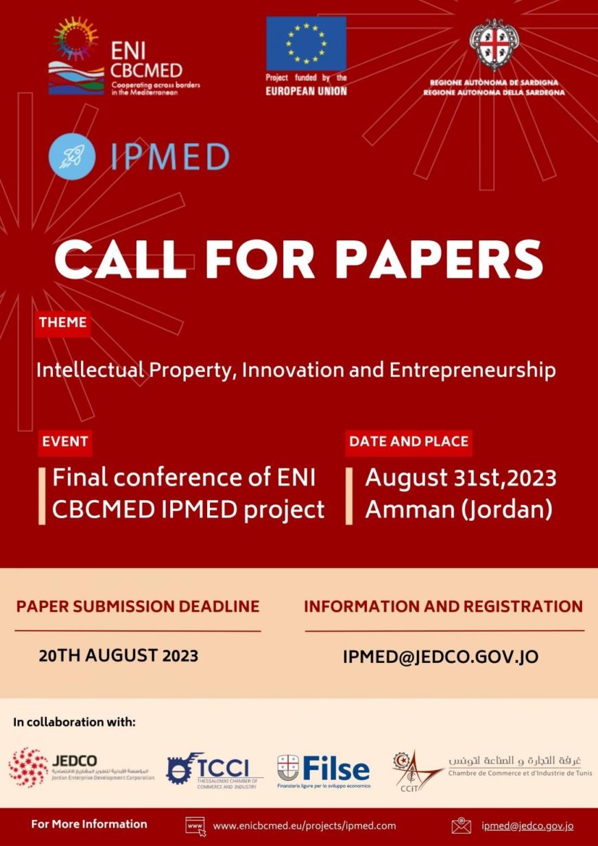 Within the framework of IPMED’s activities, Jordan Enterprise Development Corporation (JEDCO) the Jordanian Lead Partner in cooperation with its partners; FILSE in Italy, Thessaloniki Chamber of Commerce and Industry in Greece and Tunis Chamber of Commerce and Industry in Tunisia are organising IPMED Closure Conference, which will take place on Thursday August 31st, 2023 in Amman.