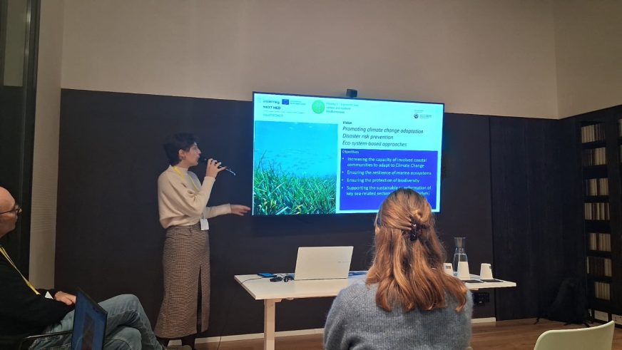 On the 25th of November MedPROACT project joined Interreg Euro-Med project “MPA4Change” in Barcelona for a workshop under the umbrella of the of the Natural Heritage Mission of the Interreg Euro-Med. On this occasion, the “100MPA MED Alliance”, a collaborative initiative aimed at enhancing the resilience and effectiveness to climate change of the Mediterranean Marine Protected Areas (MPAs) System by integrating climate adaptation strategies in 100 MPAs across the basin by 2030, was launched. The event was held under the umbrella of the Natural Heritage Mission of the Interreg Euro-Med and was attended by MPA4Change partners and associated partners, representatives of different EU-funded projects, the Interreg Euro-Med Joint Secretariat, the Union for the Mediterranean and other supporters of the 100MPA MED Alliance. MPA4Change project is the fruit of a 10-year capitalization process, from designing, piloting, upscaling till transferring solutions that aim at promoting the role of Marine Protected Areas as nature-based solution to face the climate change in the Mediterranean. As MedPROACT will co-develop nature-based solutions and adaptation plans together with the coastal local communities, the connection and potential links between the two projects and the newly created alliance are there to provide stable foundations for a successful continuation of this initiative.