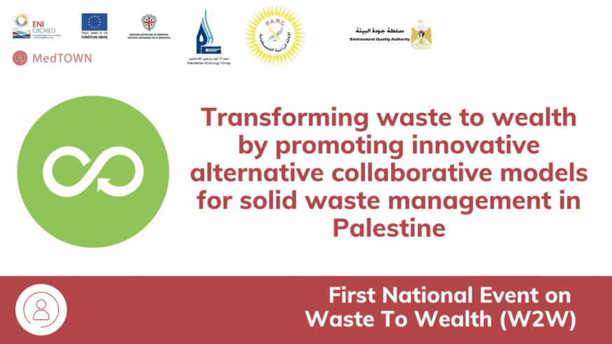The Palestinian Hydrology Group (PHG) and the Palestinian Agricultural Relief Committee (PARC), within the MedTOWN project, launched a pilot project for waste separation at source in May 2023 in Beitillu town in Ramallah governorate, targeting 100 households. In this initiative, families will separate the waste at home and then send the sorted waste into separate containers in each home. Prior to the pilot project, household waste sorting was not practiced. In order to promote and strengthen this initiative and achieve commitment and sustainability, incentives will be granted to families who are committed to separating waste on a daily basis. A computerized system has been developed to facilitate the management, recording the separated waste quantity by each family and convert this quantity into incentives or rewards at the Municipality.