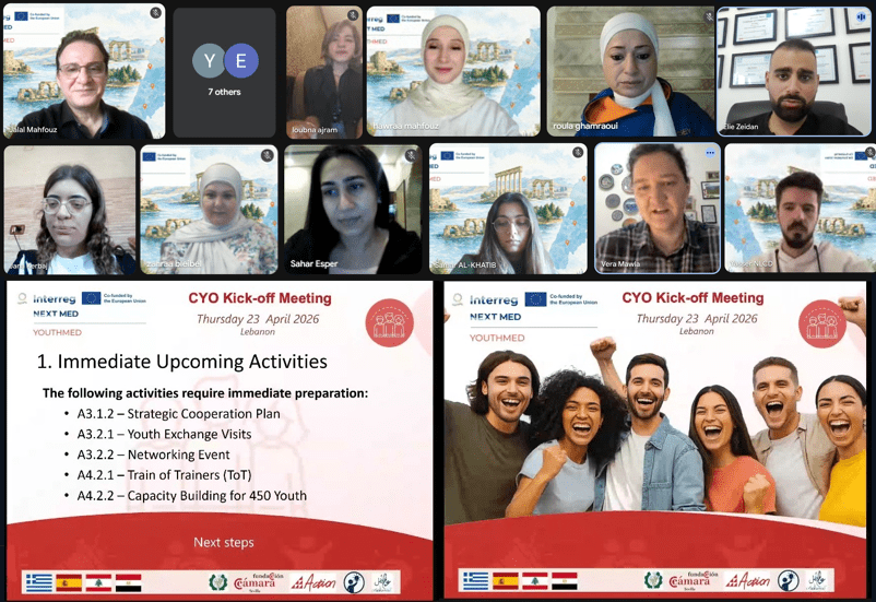 Eight Lebanese youth organizations representing different regions across Lebanon launched today the implementation phase of YOUTHMED cross-border cooperation and national-level training activities in Lebanon. The meeting marked the beginning of the operational coordination phase for upcoming youth training programmes, mentoring activities, awareness actions, and youth participation in cross-border exchanges and regional cooperation activities across the Mediterranean. YOUTHMED is building a cooperation network involving 25 organizations from 4 Mediterranean countries to strengthen youth participation, cross-border cooperation, and inclusive youth engagement. YOUTHMED – Empowering YOUTH for an Inclusive MEDiterranean – is co-funded by the European Union through the Interreg NEXT MED Programme.