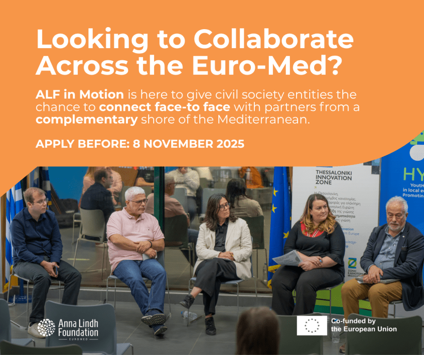 ALF in Motion gives intercultural dialogue civil society entities the chance to connect face-to face with partners from a complementary shore of the Mediterranean. ALF in Motion provides financial support to cover mobility costs. Through this programme, entities can choose to develop projects with new partners, bring an expert to their existing event, co-create art or produce new knowledge. In this programme, we introduce four distinct modalities.