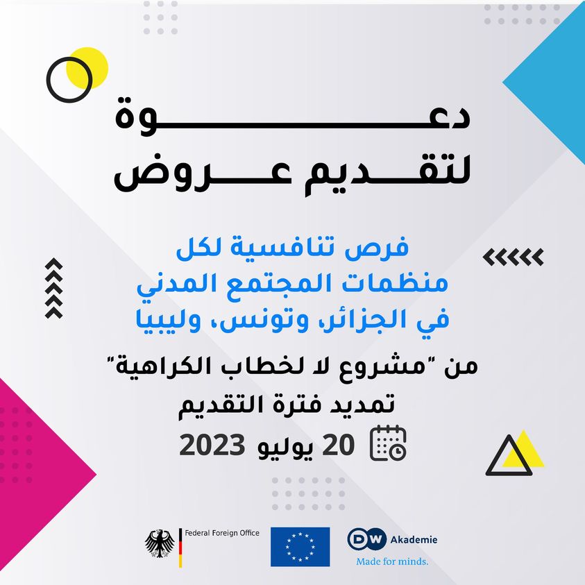The project “No Hate Speech” funded by the German foreign office, and the European Union, aims to increase the resilience against the growing danger of disinformation and Hate Speech on societies in the MENA region and promote peace in the digital space. In the framework of the project “No Hate Speech”, three peacebuilding campaigns shall be produced from Libya, Tunisia, and Algeria.”