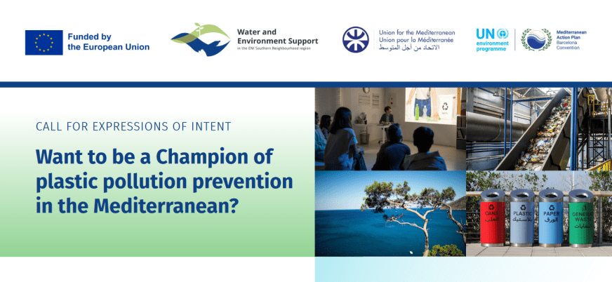 The EU-funded “Water and Environment Support (WES) in the ENI Southern Neighbourhood Region” project announces a Call for Expressions of Intent for Mediterranean actors to propose new actions and solutions that prevent pollution from plastics in our region.