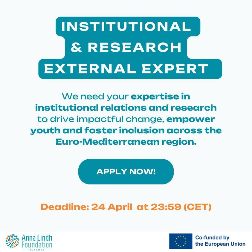 The Anna Lindh Foundation (ALF) is seeking an experienced and knowledgeable Institutional and Research External Expert for its Mediterranean Youth in Action (MYA) Programme.