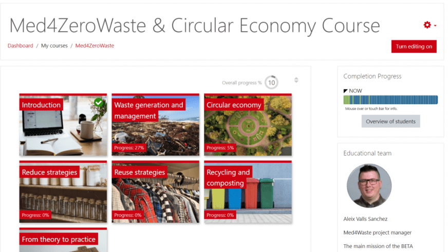 We are thrilled to announce that we launched the Med4ZeroWaste & Circular Economy Course, and enrolment is now open and free of charge! We encourage you to create an account at Ubiqua (where the course is hosted) and start exploring its contents.