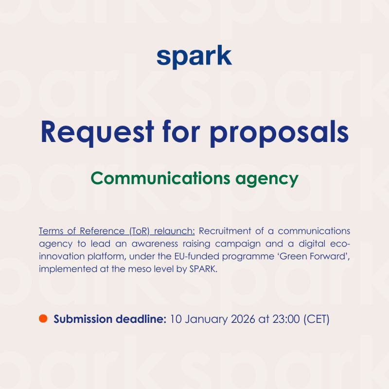 SPARK is seeking a hashtag#communications agency to lead two key activities under the hashtag#GreenForward programme, funded by the European Union and implemented at the meso level by SPARK.