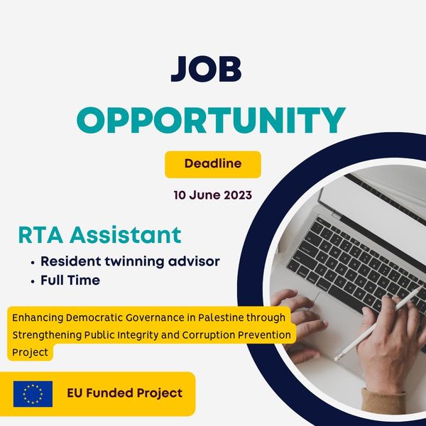 The Twinning Project “Enhancing Democratic Governance in Palestine through Strengthening Public Integrity and Corruption Prevention” is seeking RTA assistant.