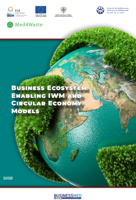 This report, on business ecosystem enabling Waste Management and circular economy models in Mediterranean countries (Greece, Italy, Jordan, Lebanon, Spain and Tunisia), falls within the framework of MED4WASTE project and will focus on analyzing the concepts of resource-efficient and climate-friendly waste management systems. We will investigate how integrated circular economy solutions are incorporated into national and regional policy processes, and how business cooperation programs are