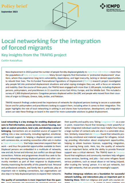 The EU-funded Transnational Figurations of Displacement (TRAFIG) research project investigated why people fall into protracted displacement situations and what coping strategies they use, with a focus on networks and mobility. Over the course of three years, the TRAFIG team engaged with more than 3,100 people, including displaced persons, policymakers, and practitioners in 11 countries across East Africa, Europe, and the Middle East. This included a survey of 1,900 displaced persons: Congolese persons displaced within the DRC and people who moved from their countries of origin to Ethiopia, Greece, Italy, Jordan, and Pakistan.