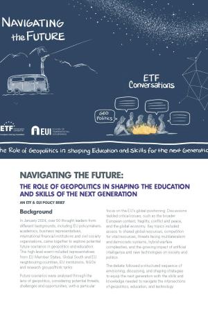 Jointly developed by the ETF and the EUI, this policy briefing highlights ways in which education and skills can help build resilience, promote peace and drive sustainable development, emphasising the need to work towards a common vision of the future to shape 21st century education systems fit for an uncertain future.