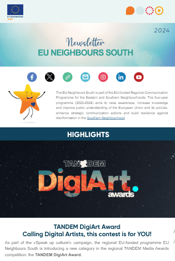 EU Neighbours South is the EU’s Regional Communication Programme for the Southern Neighbourhood. It aims to raise awareness, increase knowledge and improve public understanding of the European Union and its policies, enhance strategic communication actions and build resilience against disinformation in the Southern Neighbourhood.