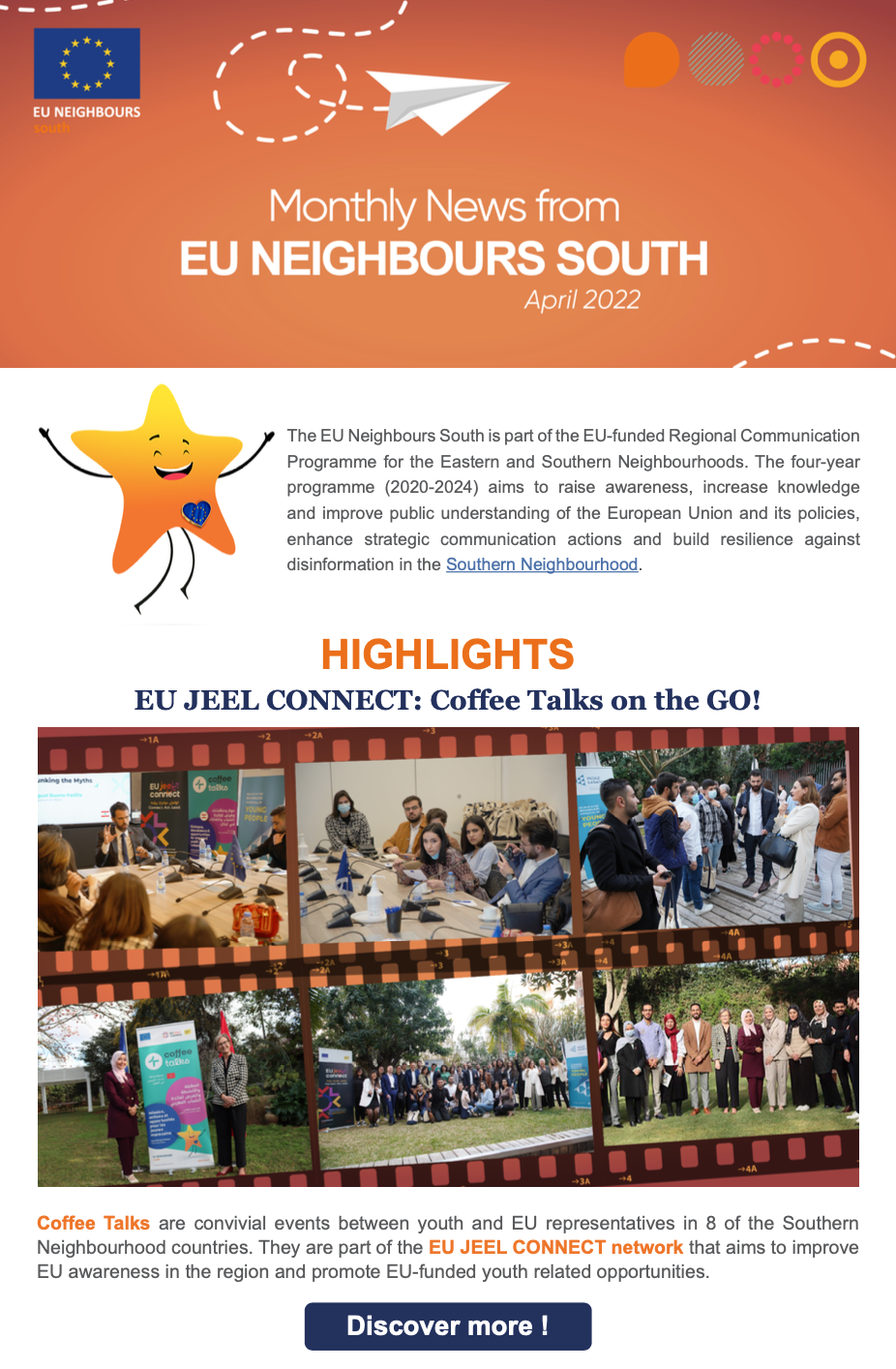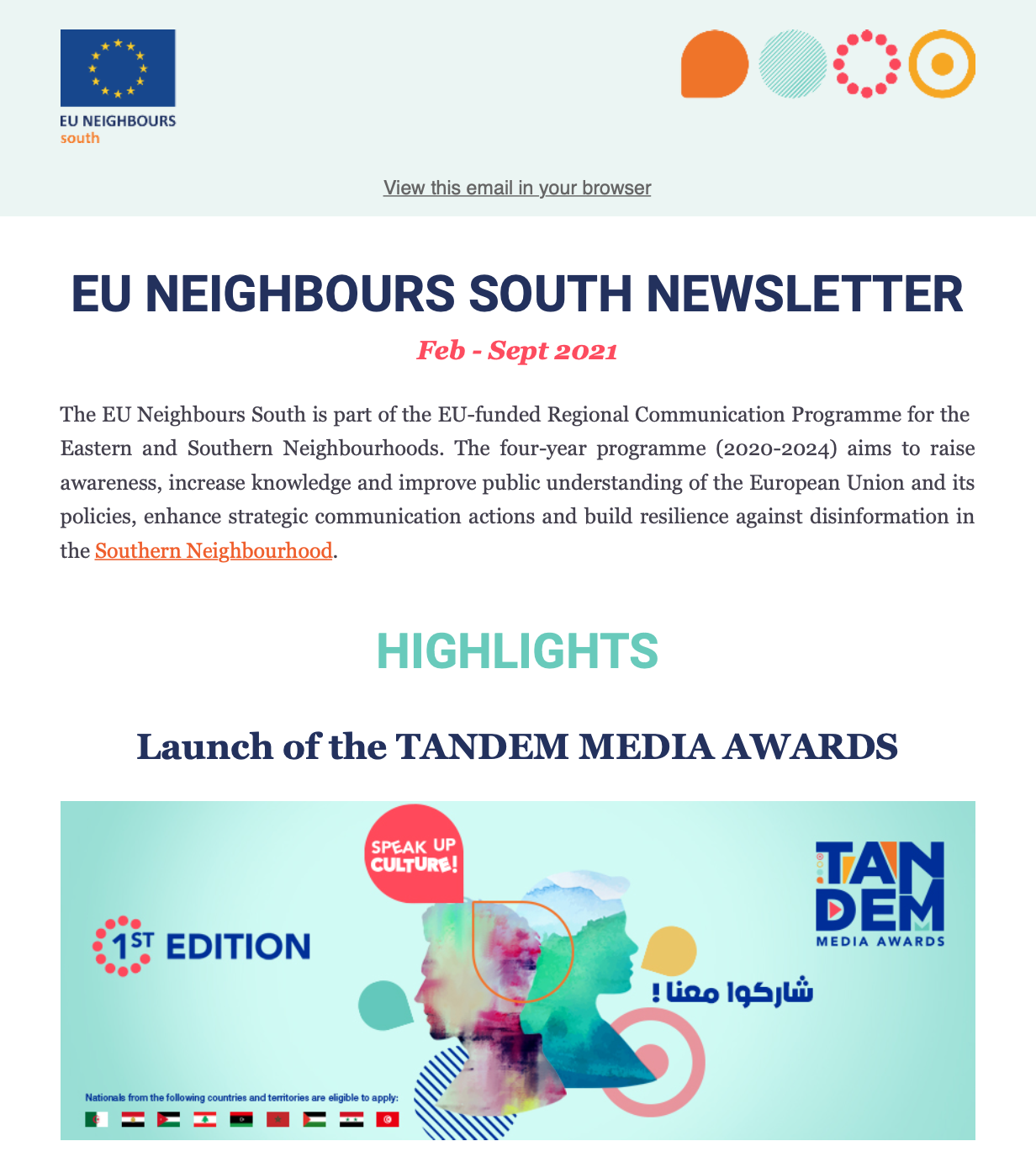 EU Neighbours South is the EU’s Regional Communication Programme for the Southern Neighbourhood. It aims to raise awareness, increase knowledge and improve public understanding of the European Union and its policies, enhance strategic communication actions and build resilience against disinformation in the Southern Neighbourhood.