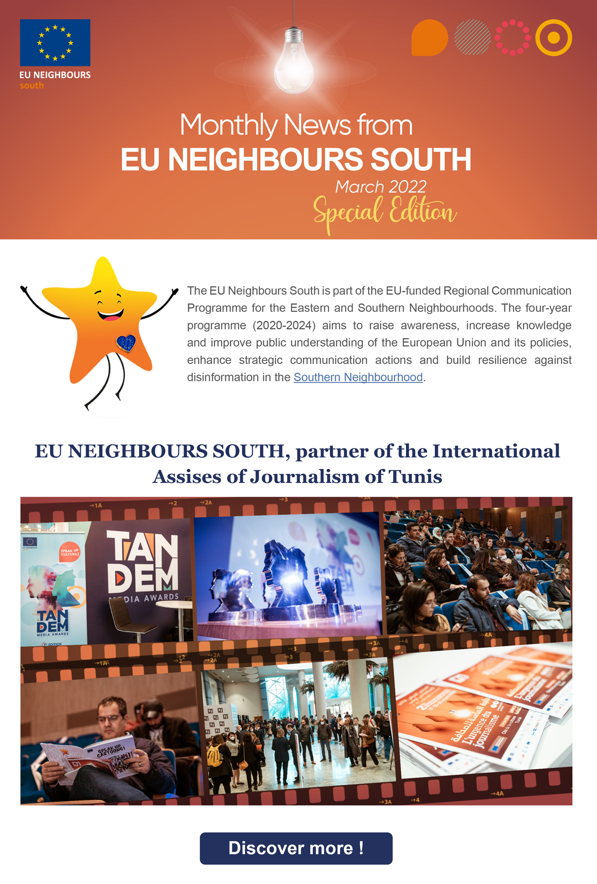 The special edition of the EU Neighbours South newsletter “Let’s SPEAK UP CULTURE! ” is now available. It looks back on the programme’s latest activities as partner of the International Assises of Journalism of Tunis.