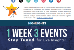 EU Neighbours South is the EU’s Regional Communication Programme for the Southern Neighbourhood. It aims to raise awareness, increase knowledge and improve public understanding of the European Union and its policies, enhance strategic communication actions and build resilience against disinformation in the Southern Neighbourhood.