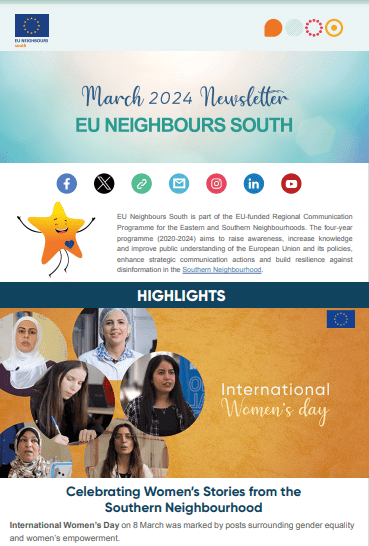 The monthly EU Neighbours South newsletter for March is now available. It looks back on the programme’s latest activities and the news at regional level.