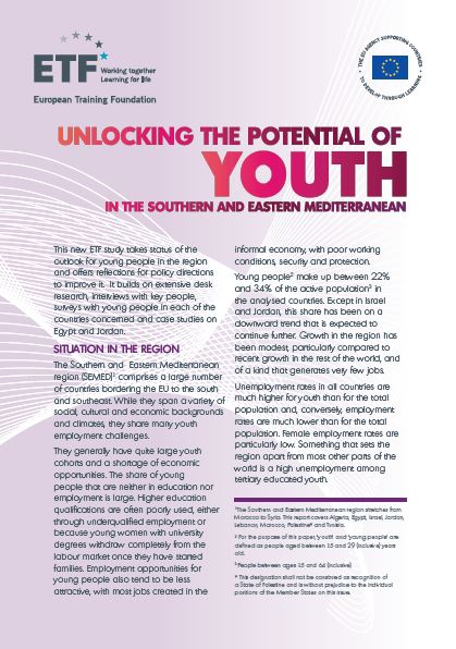 ETF study : unlocking the potential of youth in the Southern and Eastern Mediterranean