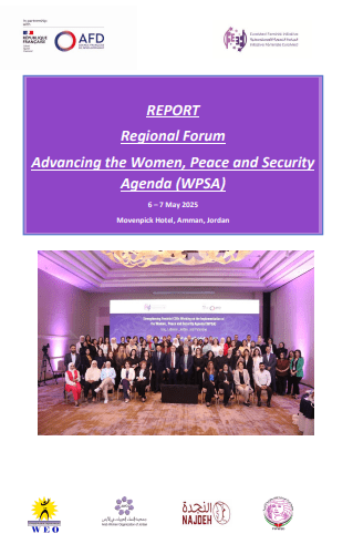 The First Regional Forum “Advancing the Women, Peace and Security Agenda (WPSA),” organised under the patronage of H.E. Ms Wafaa Bani Mostafa, Jordan’s Minister of Social Development and the Head of the Inter-Ministerial Committee for Women’s Empowerment, was held on 6-7 May 2025 in Amman, Jordan, aiming to advance the WPSA in the region. It took place within the framework of the regional project Strengthening Feminist CSOs for the Implementation of the Women, Peace and Security Agenda in Iraq, Lebanon, Jordan and Palestine, funded by the Support Fund for Feminist Organisations of the Agence Française de Développement (AFD) and the French Ministry for Europe and Foreign Affairs. The Forum was organised by EuroMed Feminist Initiative (EFI) in partnership with the consortium of EFI member organisations: Arab Women Organization (AWO) in Jordan, Association Najdeh in Lebanon, Women Empowerment Organization (WEO) in Iraq and the Palestinian Working Women Society for Development (PWWSD) in Palestine.
