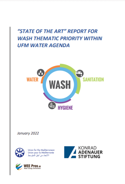 The main objectives of the SoA report are to provide a brief overview of the current status of WASH services in the UfM region, also, it identifies strengths and weaknesses, priority areas for WASH sector in MENA region highlighted for information and knowledge sharing (i.e., technology, governance and economic aspects, best practices and case studies). Moreover, this report provides an assessment of sanitation conditions and aspects in UfM region. With elaboration of a policy chapter highlighting different approaches in dealing with policy, regulation and implementation of WASH. In addition, an overview on worldwide innovative solution in the WASH sector and those which can be applied in the region to support UfM WASH working group linking report outcomes with the UfM financial strategy objectives in the Mediterranean region.