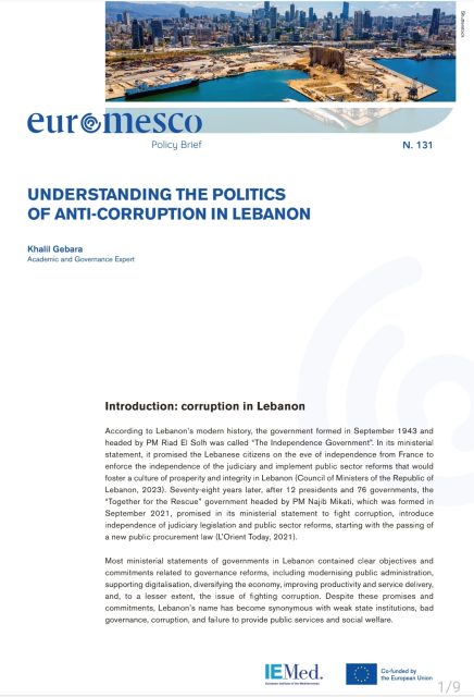 This policy brief examines the historical context and current state of corruption in Lebanon. Despite numerous promises and commitments by successive governments to tackle corruption, Lebanon continues to be synonymous with weak state institutions, bad governance, and failure to provide public services and social welfare.