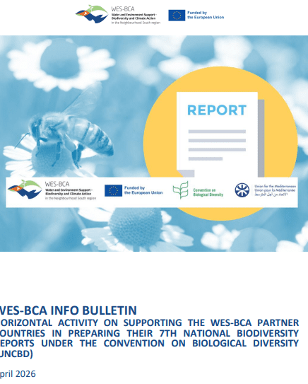As part of the “Water and Environment Support-Biodiversity and Climate Action (WES-BCA) project in the Neighbourhood South region”, a Horizontal Activity “Support for WES-BCA Partner Countries in preparing their 7th National Biodiversity Reports under the United Nations Convention on Biological Diversity (C1_HOR-3) was prepared and delivered by the WES-BCA experts. On the 21st of January 2026, a Regional Webinar was held, involving designated participants representing different stakeholders from the WES-BCA PCs. The WES-BCA Information Bulletin to give further details to stakeholders on how the team of WES-BCA Experts organised this Horizonal Activity.