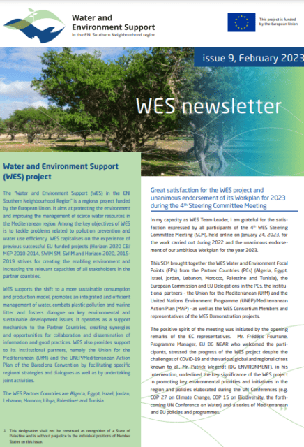 The “Water and Environment Support (WES) in the ENI Southern Neighbourhood Region” is a regional project funded by the European Union. It aims at protecting the environment and improving the management of scarce water resources in the Mediterranean region. Among the key objectives of WES is to tackle problems related to pollution prevention and water use efficiency. WES capitalises on the experience of previous successful EU funded projects (Horizon 2020 CB/ MEP 2010-2014, SWIM SM, SWIM and Horizon 2020, 2015- 2019 strives for creating the enabling environment and increasing the relevant capacities of all stakeholders in the partner countries.