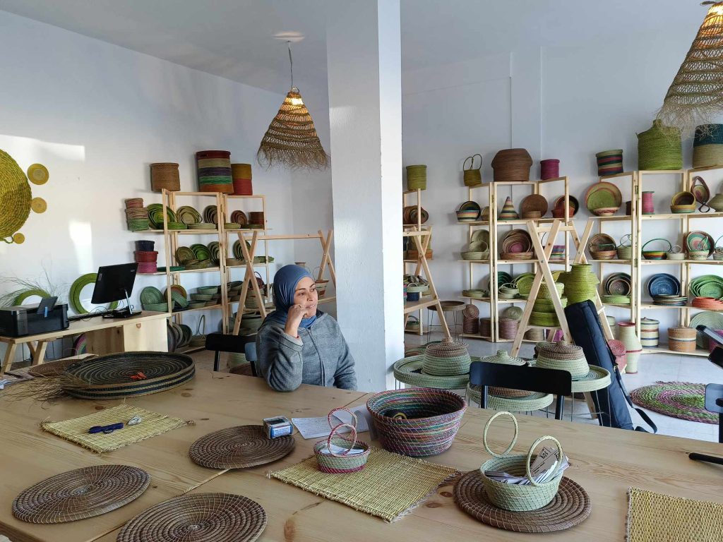 While not all collaborators work continuously, they mobilise quickly when large orders come in, often completing them within a week or two. This efficiency and dedication have allowed Meriem to secure and retain major clients, including big stores in Tunis, Sfax, and Sousse. These stores purchase significant quantities of Halfa-based products, which they successfully resell, consistently returning to place more orders. “They buy quite a significant quantity, and they manage to sell them and come back to place more orders,” Meriem noted, highlighting the steady demand for her creations.